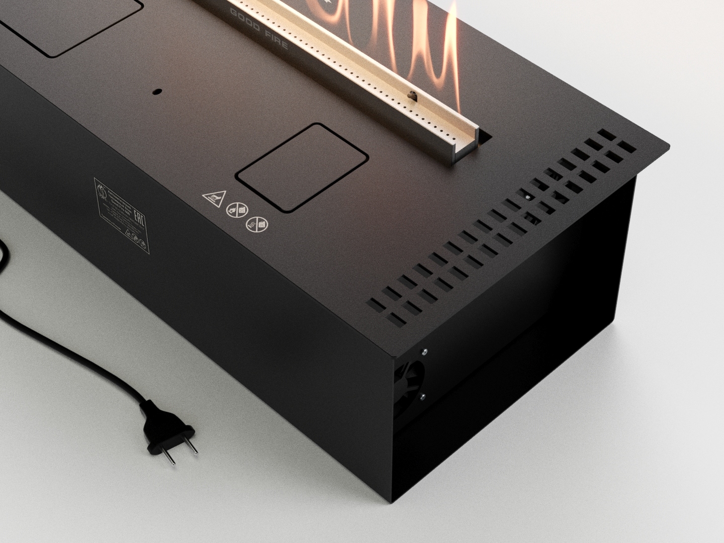 К тому же электронное управление позволяет добавить следующие возможности к автоматическому биокамину Good Fire 1000 RC Black: