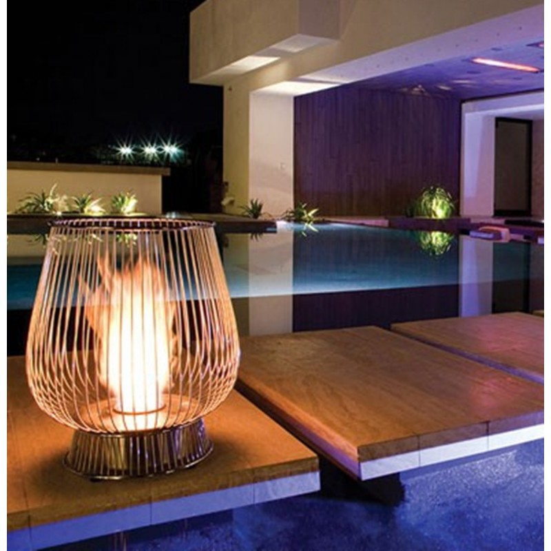 Это одна из оригинальных, инновационных и современных моделей для открытого пространства. Устройство имеет безопасный механизм заполнения топливом и ручку для управления уровнем пламени.