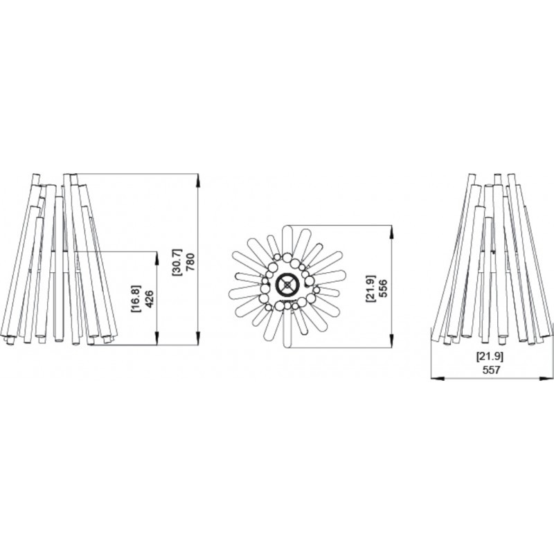 С этим камином на свежем воздухе отдыхать на много проще. Простые линии, соединяющиеся в ровную геометрическую фигуру, превосходно украсят сад. Ровные трубки изготовлены из нержавеющей стали и закреплены вокруг горелки серии АВ, объемом 3 литра.