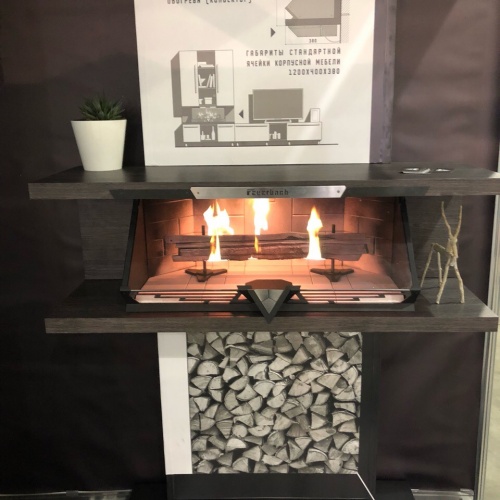 Габаритные размеры топки FEUERBACH Type 812 позволяют размещать устройство, как "консольно", так и в качестве стандартного модуля корпусной мебели (ШВГ 1200Х400Х38мм). Таким образом устройство не предполагает возведение или приобретение декоративного портала и может использоваться "из коробки". Декоративный несущий корпус позволяет значительно увеличить горизонтальные углы обзора.