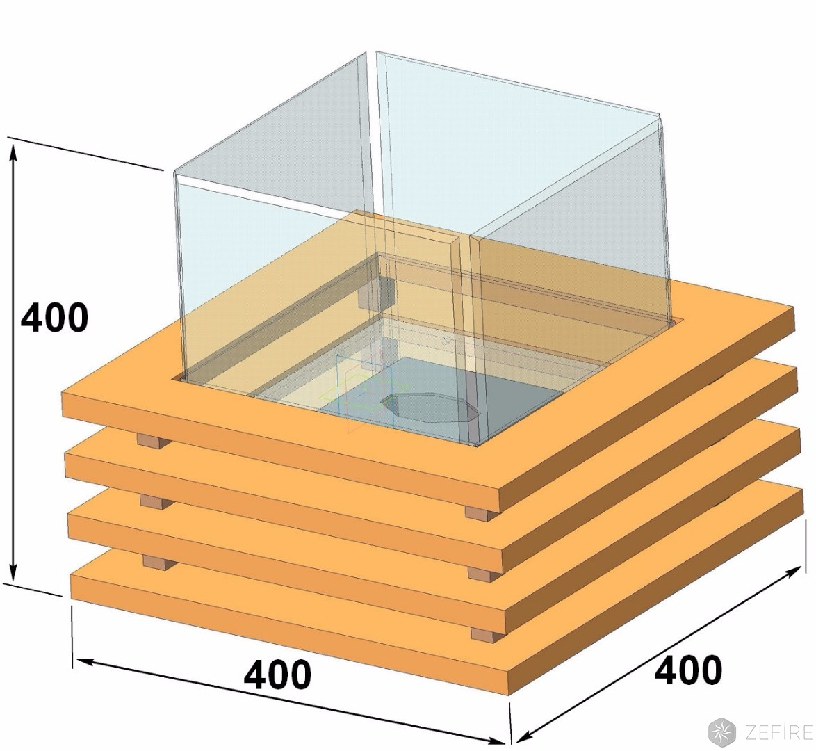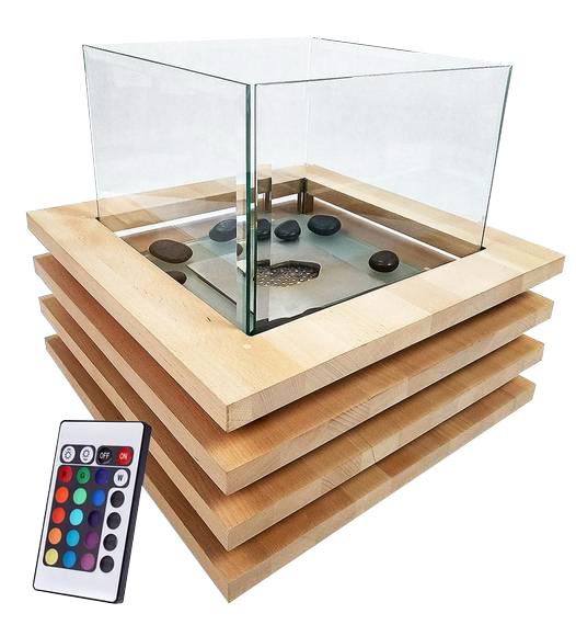 Топка для биокамина изготовлена из нержавеющей шлифованной стали. Оригинальное сочетание стекла, дерева и металла, а также LED подсветка, управляемая пультом ДУ, сделают камин центром внимания. Питание подсветки 220V.
