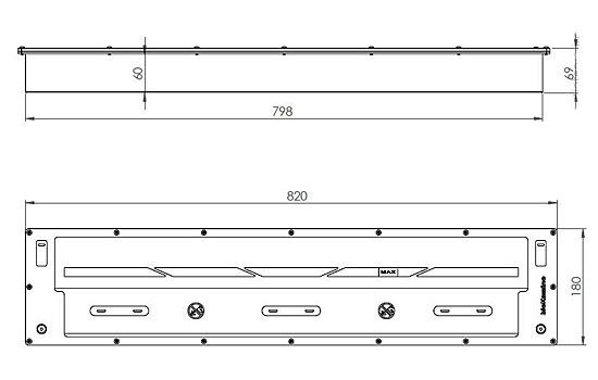 - Габаритные размеры ШxГxВ, (мм): 820х180х69