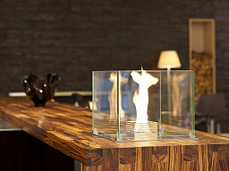 Настольный биокамин – компактное устройство с огоньком внутри, создающее уют, домашнюю обстановку, а также является красивым и эффектным украшением интерьера в разном стиле. Для его работы не требуется электричество и дымоотвод. Небольшое переносное изделие отличается универсальностью и мобильностью, что позволяет использовать его в любом помещении или на улице. За счет элегантного и оригинального дизайна можно преподнести маленький настольный автономный камин в виде подарка.