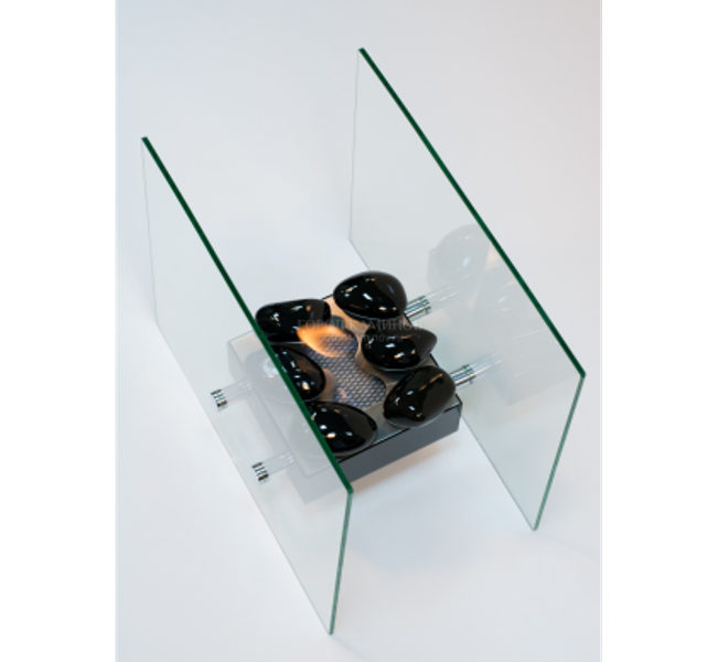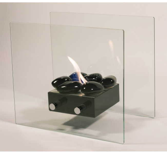 BioKer Mr.Smith - небольшой настольный биокамин с основанием черного цвета и набором черных камней. Стекла - прозрачные. Высокая степень безопасности. При случайном опрокидывании камина специально разработанная конструкция топливного блока не позволит топливу вылиться. Работает на биотопливе. Горение происходит без запаха и дыма, выделяются только водяной пар и углекислый газ в тех же количествах, что и при горении 3 свечей.