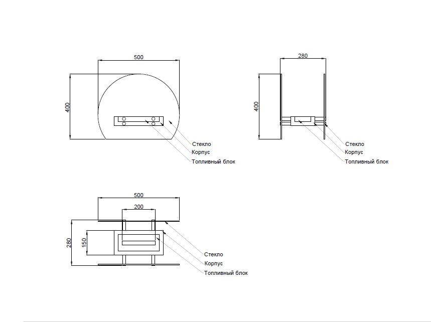 • Возможные размеры биокамина