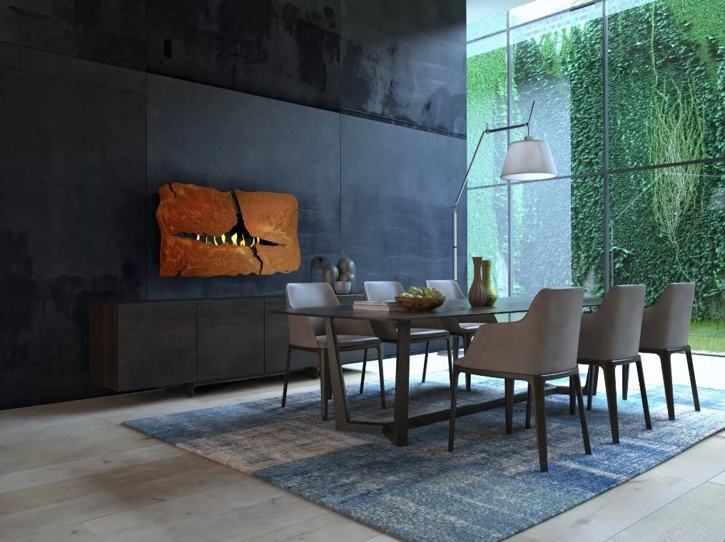 Настенный автоматический биокамин GlammFire Apollo IV EvoPlus с характерным разрывом металла на фасаде послужит ярким авангардным акцентом любого модного интерьера.