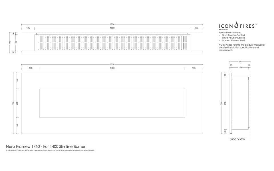 Настенный биокамин Nero 1750SS с декоративной рамкой из брашированной нержавеющей стали комплектуется горелкой ICON FIRES Slimline 1400mm.