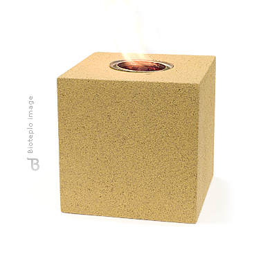 Биосвеча отличается приятной шероховатой текстурой, полученной напылением каменной крошки. Цвет напыления может быть любым. Размер биосвечи также может быть любым: в качестве базового представлен размер 150мм х 150мм х 150мм.