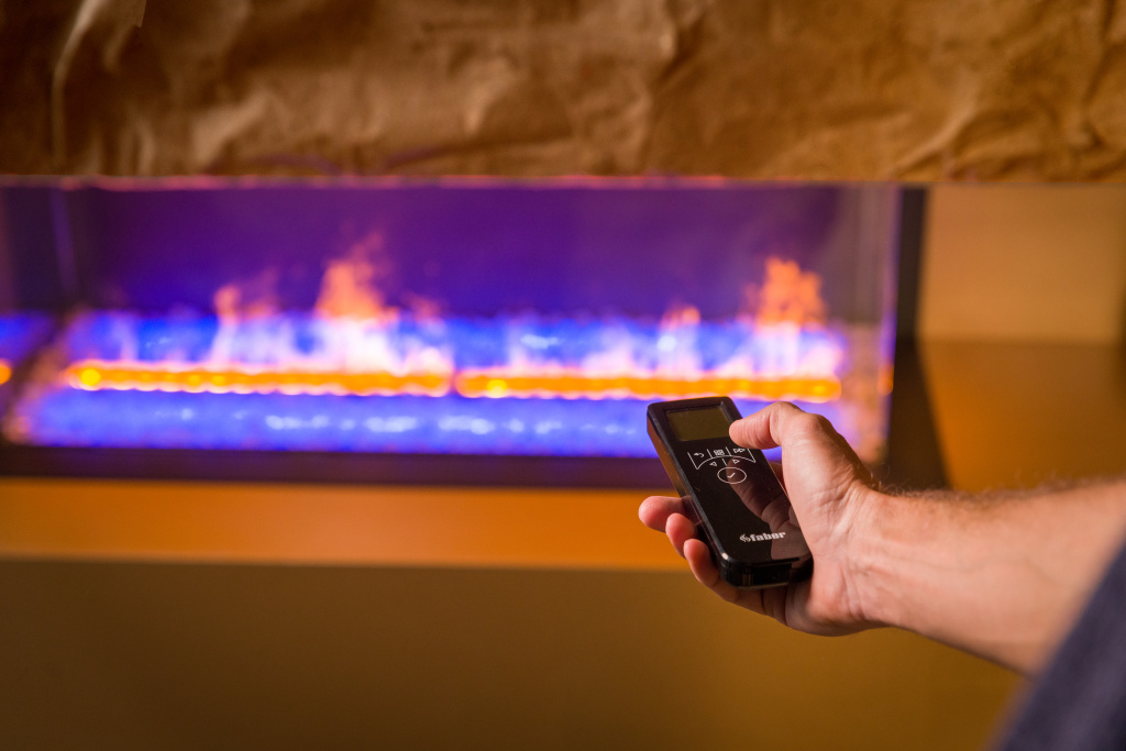 Чтобы стенки камина не запотевали, мощные вентиляторы непрерывно втягивают водяной пар. Из-за движения пара пламенные языки подрагивают как настоящие, что также увеличивает реалистичность камина.