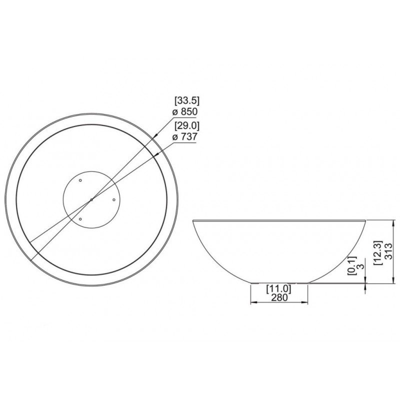 - Габаритные размеры ШxГxВ, (мм): 850x850x313