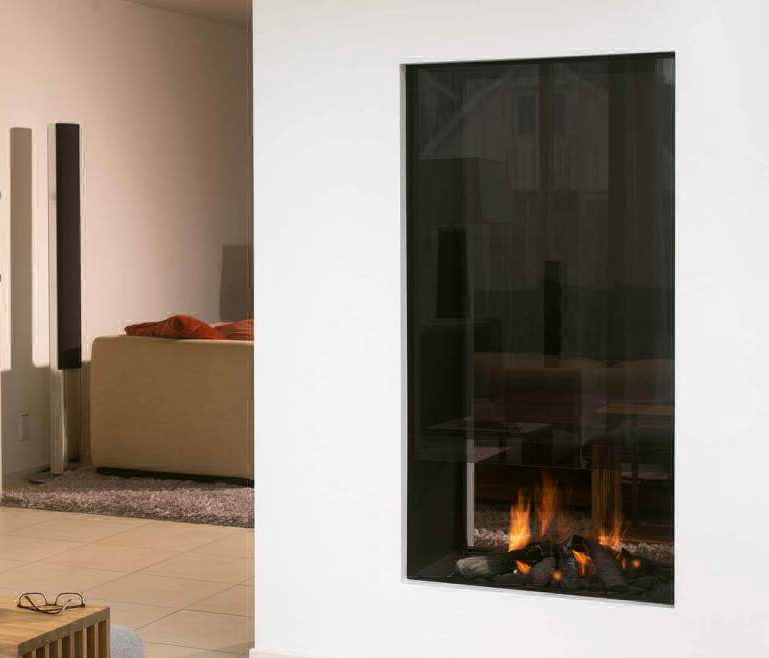 Газовая каминная топка Boley 850 в современном хай-тек стиле. Встраиваемая (сквозная) модель. С помощью двухстороннего камина вы легко превратите скучную разделительную стену в любопытное украшение интерьера.