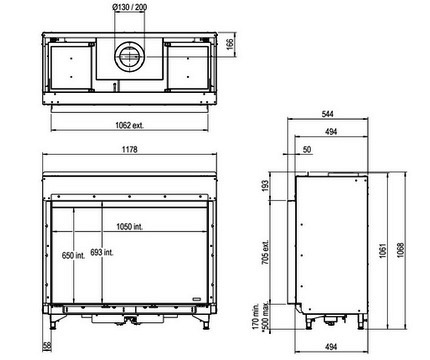 Современный камин Faber Matrix 1050/650 I с широким видовым стеклом без рамки новым поколением объемной горелки Log burner. Декоративное оформление топки комплектом дров и хвороста. Закрытая топка. Требуется подключение к коаксиальному (труба в трубе) дымоходу.