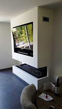 Эффект усиливается при использовании соответствующей облицовки. Выполнена топка из качественной нержавеющей стали, а закрывается она прозрачным стеклом. Дополнительно на стекло наносится антибликовое покрытие.