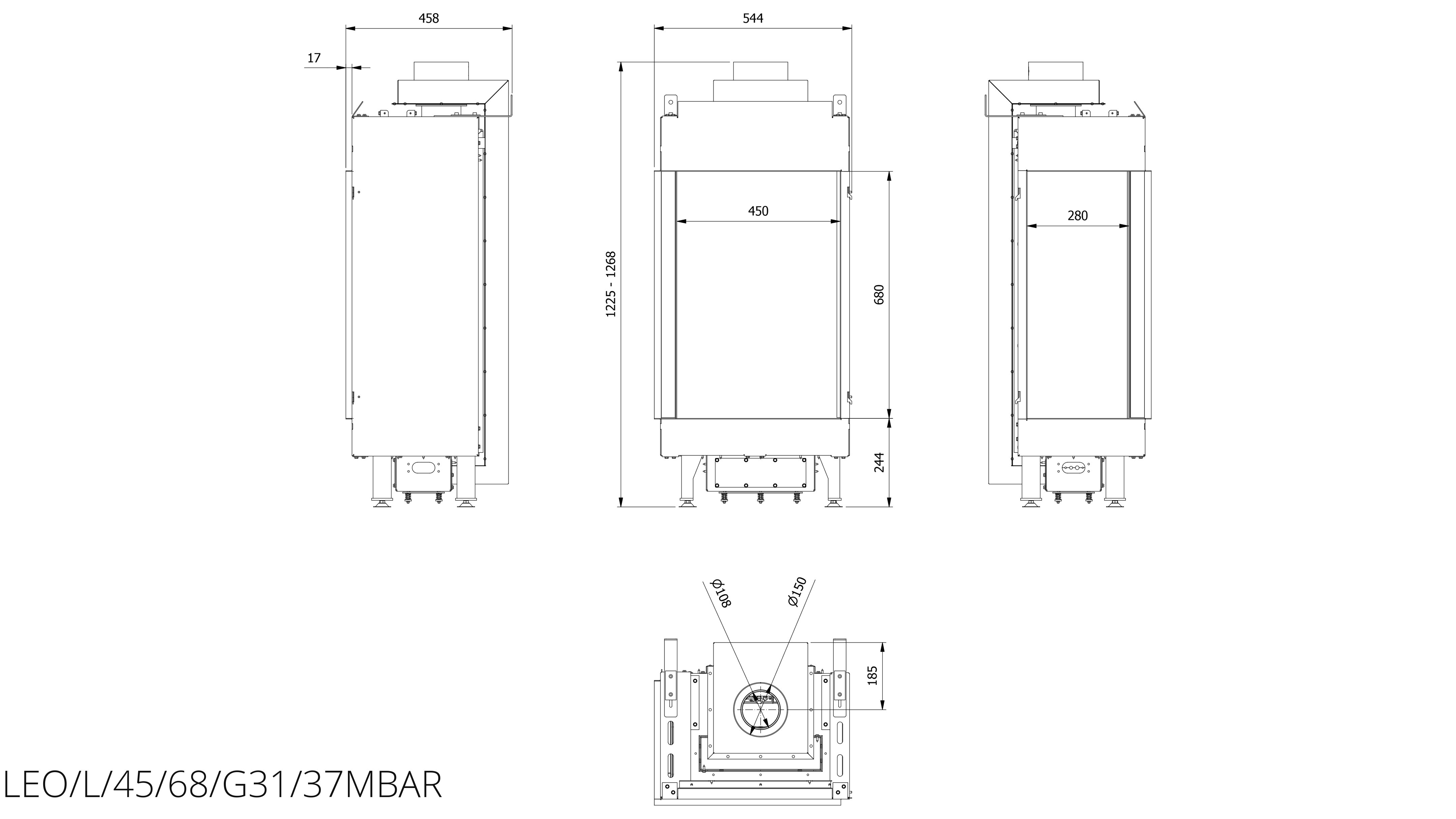 Газовый камин Kratki LEO/L/45/68/G31/37MBAR левая баллонный газ