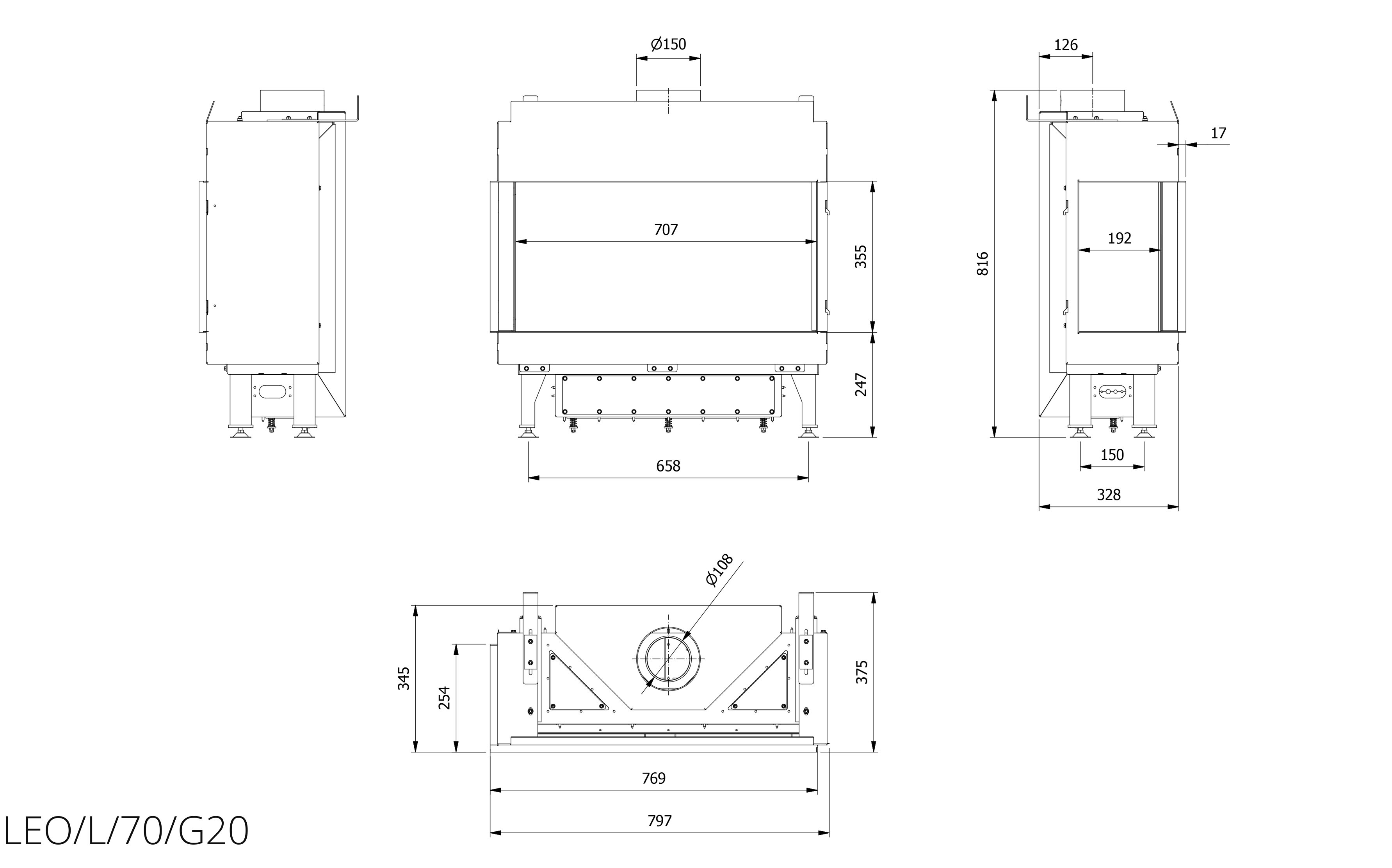Газовый камин Kratki LEO/L/70/G20 левая магистральный газ