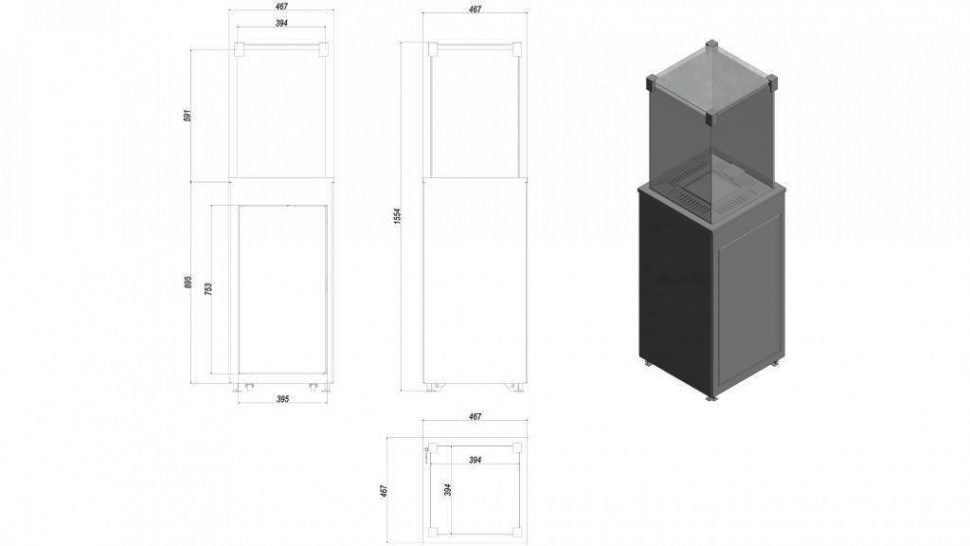 - Габаритные размеры ШxГxВ, (мм): 467x467x1553