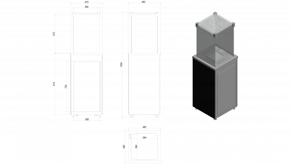- Габаритные размеры ШxГxВ, (мм): 482x482x1553