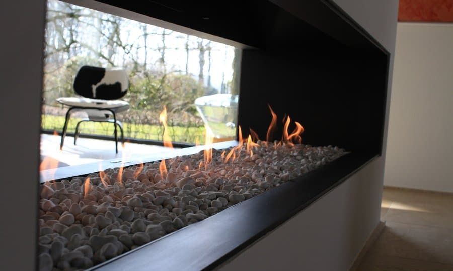 При мощности оборудования для отопления жилья более 3 кВт/ч, необходимо сделать дымоотвод из стали или чугуна. Внешнюю часть дымохода требуется прикрыть минватой и закрыть специальным чехлом. Встраиваемые газовые камины с небольшой мощностью, приспособлены удалять продукты горения при помощи вентиляции. Для безопасности, в помещении, где установлен камин, в обязательном порядке должны быть датчики неполного сгорания пропана и сигнализационная система. У газовых каминов для дачи без дымохода, камера сгорания – закрытого типа. Такие камины работают по принципу задействования электроэнергии для корректной работы автоматической системы и вентилятора.