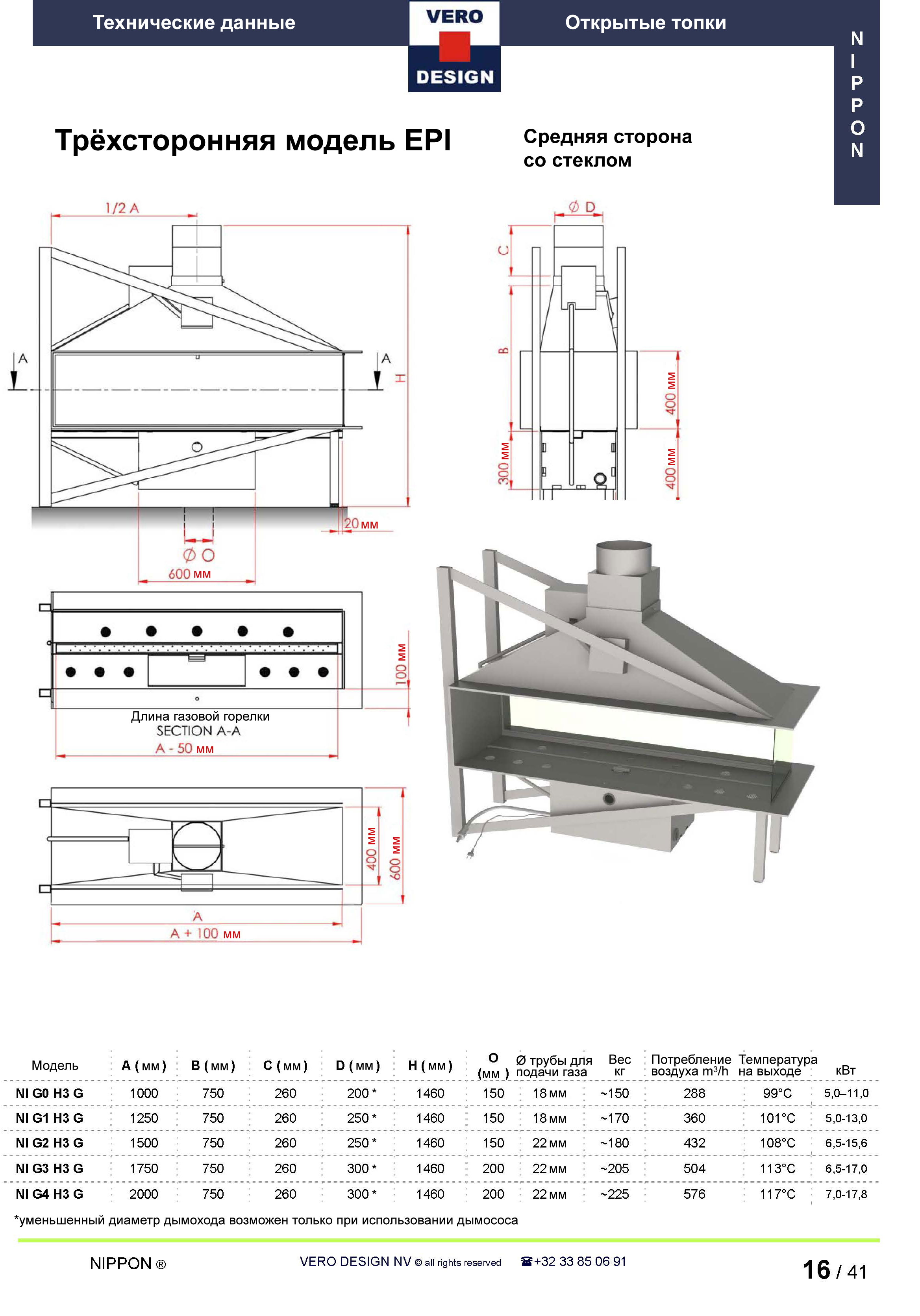 Газовый камин Vero Design Nippon NI G1 H3