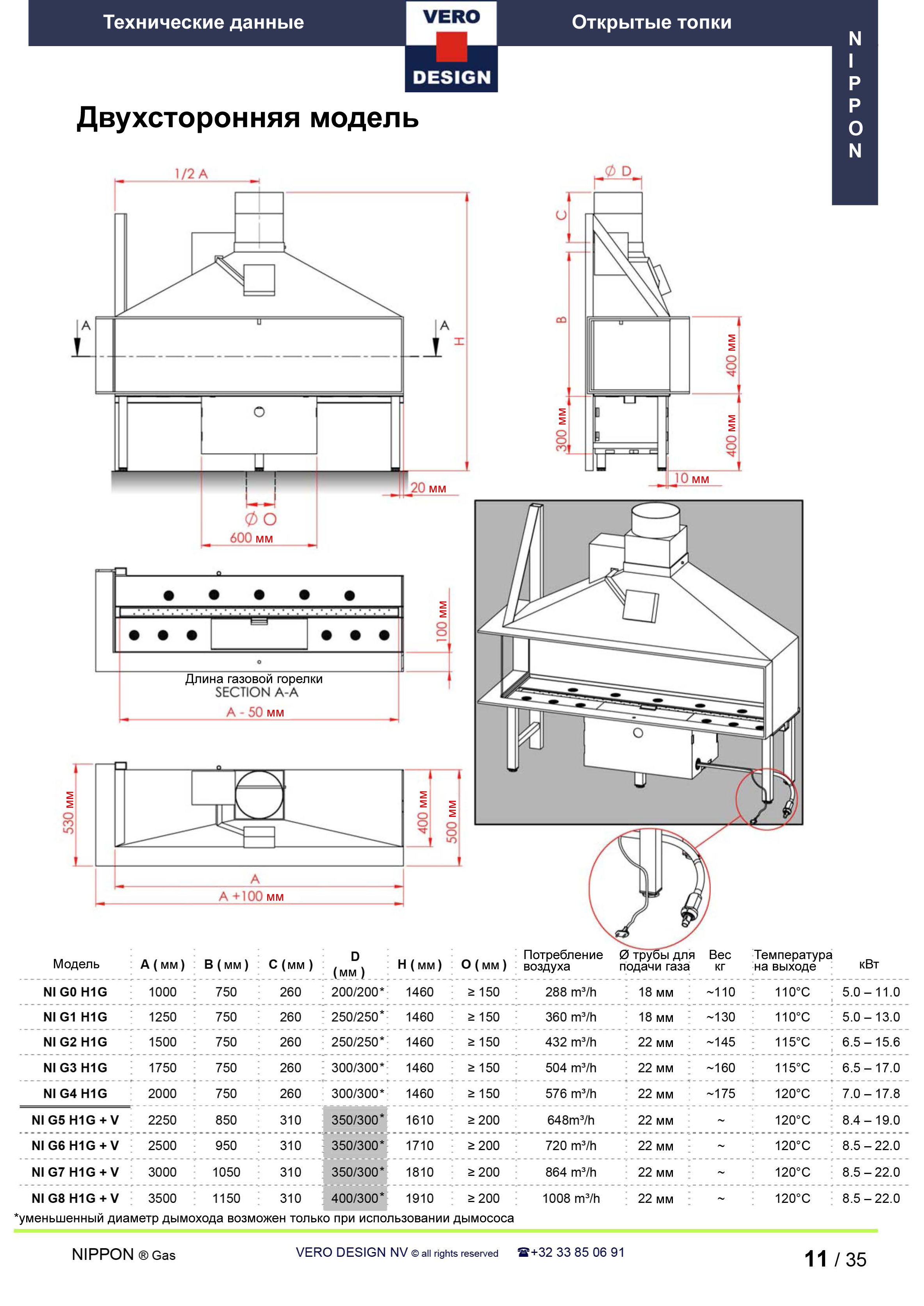 Газовый камин Vero Design Nippon NI G4 H1 G
