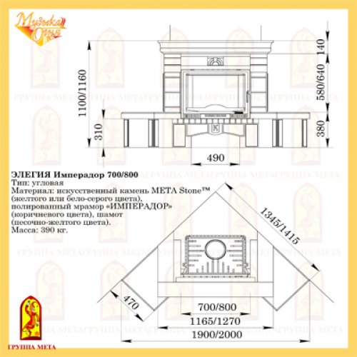 Каминная облицовка Мета Музыка Огня Элегия Имперадор 800