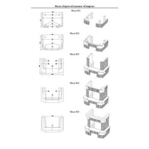 При монтаже камина в облицовке Спарта, необходимо точно следовать схеме кладки камина и требованиям пожарной безопасности.