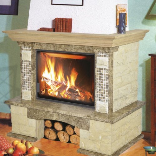 Бюджетная облицовка Bella Italia Saba стилистически близка к средиземноморскому кантри. Такой камин мог бы согреть зимним вечером семью зажиточного фермера из Тосканы или Ломбардии. Но прекрасно украсит, а вместе с одной из пяти интегрируемых топок и обогреет загородный дом в России, климат которой не столь благодатен. Сочетание блоков рустикального кремово-охристого песчаника и деталей из полированного испанского мрамора Perlado Dark светло-каштановых оттенков создают контрастную игру текстуры и цвета. Фронтальной части портала придана большая выразительность за счёт отделки каменной мозаикой, контур подчёркнут вертикальной окантовкой.
