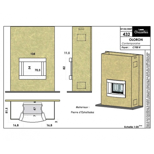 Каминная рамка выполнена из светлого камня Estallaides. Адаптируемая топка с прямым стеклом.