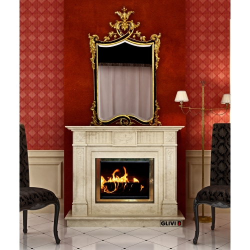 - Камин выполнен из полированного мрамора Crema Marfil.