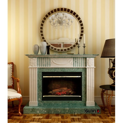 - Камин выполнен из полированного мрамора Verde Guatemala, Crema Marfil.