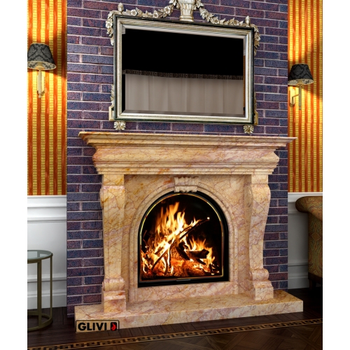 - Камин выполнен из полированного мрамора Crema Valencia.