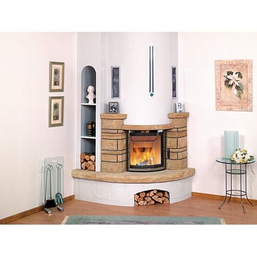 Угловой камин Hark 4/27.4 из натурального колотого камня Sandstein bossiert, Simse geschliffen.