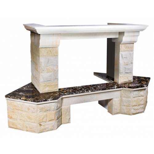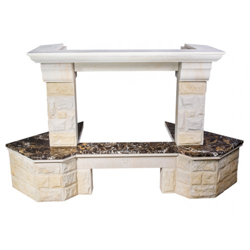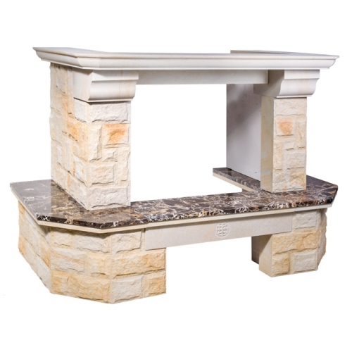 • Материал: колотый песчаник, золотистый цвет, полки - мрамор Emperador Gold