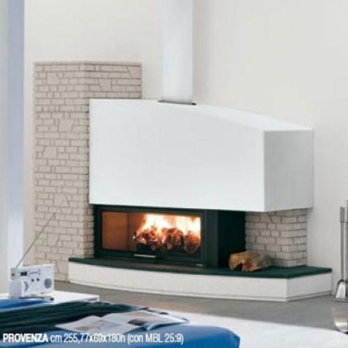 Облицовка Palazzetti Provenza выполнена из белого мрамора. Слолешница из полированного мрамора Bianco Mediterraneo или черного Slate. Цоколь версий для топок с вентиляцией выше на 10 см.