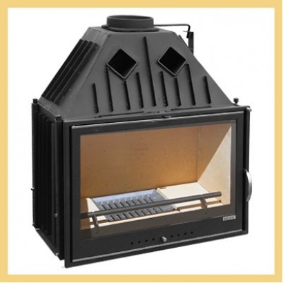 Корпус топки сварной, цельнометаллический, изготовлен из высококачественной стали, камера горения выложена шамотным кирпичом, пламегаситель выполнен из вермикулита. Топка оснащена встроенной шиберной заслонкой, которая позволяет регулировать тягу в дымоходе и технологией "чистое стекло" (система подачи воздуха в топку).