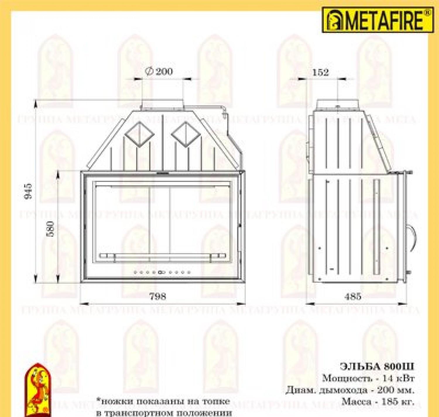 Каминная топка Мета эльба 800ш