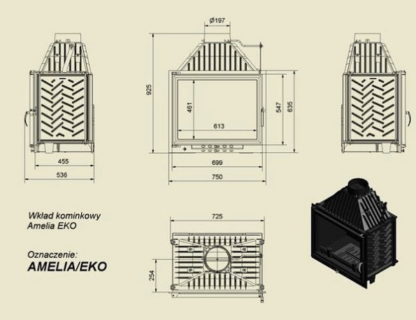 Каминная топка Kratki Amelia/EKO – топочная камера или топка-вкладыш, предназначенная для отопления дома площадью до 250 кв.м. Оборудована системой вторичного дожига, что позволило существенно сократить выбросы вредных веществ в атмосферу.