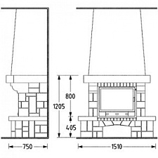 •     Оборудована регулятором тяги, который автоматически открывается в момент поднятия дверцы, отсек для дверцы, внутренняя стенка (для прохода конвекционного воздуха), отверстия подвода воздуха через съемные и поворачивающиеся задвижки, съемные ножки, поперечное сечение отверстия выхода дыма, поперечное сечение отверстий выхода воздуха (O125).