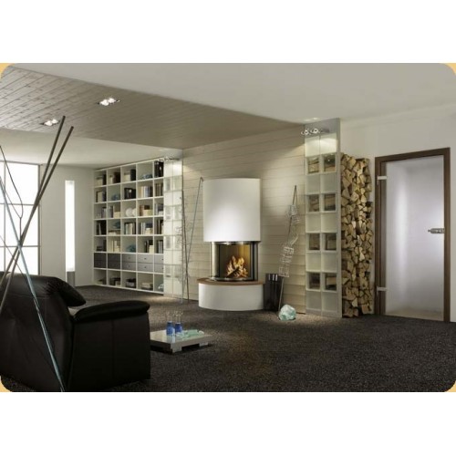 Стальная топка со сферическим стеклом. Подъёмная дверца (система Easy-Lift). Горизонтальное открывание двери для чистки стекла. Ширина дверки 525 мм. Высота - 486 мм. Возможно подключение воздуха из-вне.