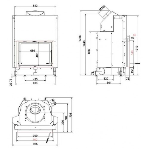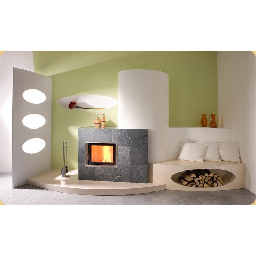Стальная топка с прямым стеклом. Подъёмная дверца (система Easy-Lift). Горизонтальное открывание двери для чистки стекла. Ширина дверки 656 мм. Высота - 488 мм.Возможно подключение воздуха из-вне.