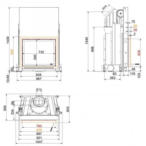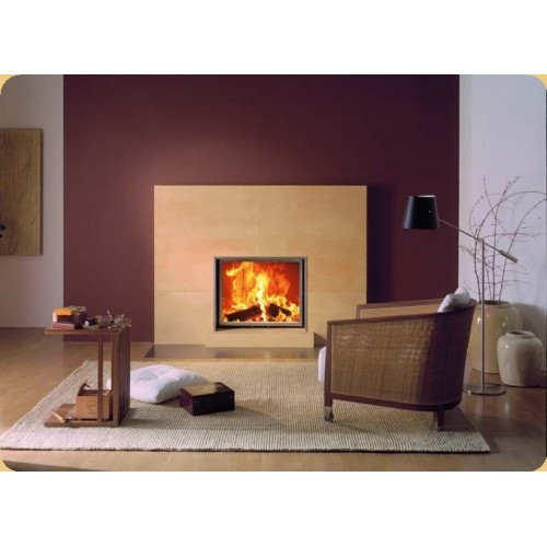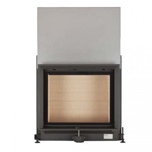 Каминная топка с прямым стеклом. Топочная камера футерована шамотом. Подъёмный механизм двери (система Easy-Lift). Ширина дверки 732 мм, высота - 592 мм. Возможно подключение воздуха из-вне. В комплекте поставляется декоративная или монтажная рамка.