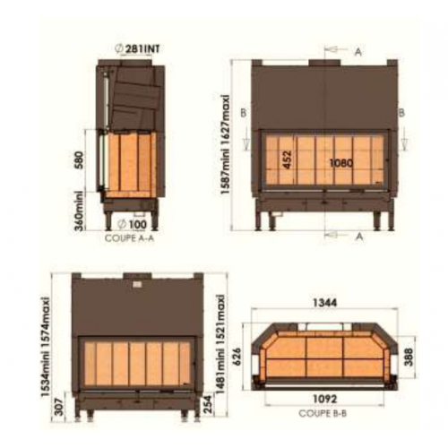 Особенности: Топка из стали с наибольшим обзором огня. Дверца открывается вбок и вверх, съёмная ручка. Топка футерована шамотным камнем: чёрным или бежевым. Рамки:полированная нержавеющая сталь/золотистая/чёрная матовая Подключение воздуха снаружи. Вентиляционный набор по заказу. Оборудована Glass Protect System © : (система защиты стекла). Характеристики: Диаметр подключения O280 Общий размер (см) 134,4 x 62,6 x 162,7 Размер стекла ( мм) 544 x 1178 x 4 Сажа 72 мг/Нм3 Мощность 25 кВ Эффективность (КПД) 76 % Уровень CO 0.15 % Вес 460 Кг Подходящие облицовки: ANTALYA