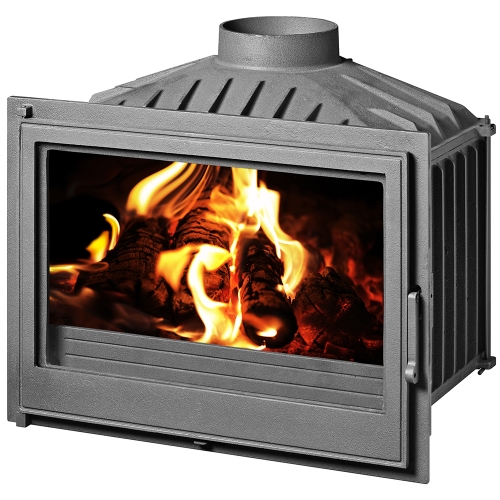 Каминная топка обогревает помещение посредством теплового излучения от чугуна и жаропрочного стекла. Для создания дополнительной площади теплоотдачи топка оснащена системой зигзагообразных ребер на дымосборнике и по всем её внешним сторонам. Топка оборудована удобной герметичной дверцей, на которой закреплено большое обзорное жаропрочное стекло.