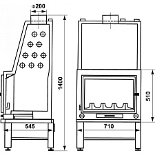 Термостойкость стекла до 800 гр Ц., в зависимости от модели топки, возможно применение двухстороннего или самоочищающегося стекла. Дымовая труба проходящая через длинный шибер для дополнительного теплого воздуха из газов - экономия на каждый день