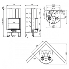 Термостойкость стекла до 800 гр Ц., в зависимости от модели топки, возможно применение двухстороннего или самоочищающегося стекла. Дымовая труба проходящая через длинный шибер для дополнительного теплого воздуха из газов - экономия на каждый день