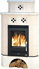 Оснащенная прямым теплостойким керамостеклом дверца топки имеет боковое открывание. Чистоту стеклянного фасада поддерживает систем «чистое стекло».