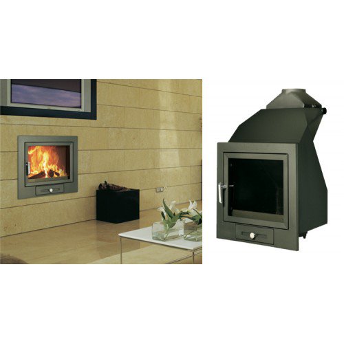 Стильная топка Hergom H02 с цельной чугунной дверкой с термостойким стеклом, оснащена бойлером для нагрева воды в системе радиаторов. Управление осуществляется регулятором, который расположен под ящиком для золы.