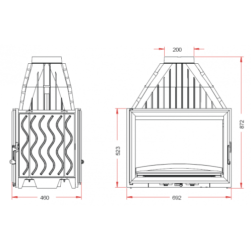 Каминная топка данной модели изготовлена из чугуна, как и остальные модели топок, представленные в новой серии от французского производителя. Каминная топка чугунная имеет достаточно высокую номинальную мощность, поэтому она отлично справляется со своей основной функцией – функцией обогрева.