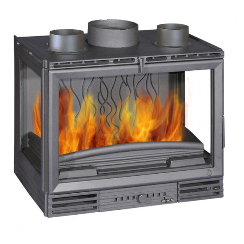 Каминная топка Инвикта Инсерт Гранд Визьон Турбо 700 с боковым стеклом с двумя двухскоростными осевыми турбинами предназначена для обогрева не только того помещения где установлена, но и смежных помещений за счет разводки тепловых труб.