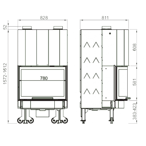 Стильная панорамная топка удивляет своим классическим видом. Топка достаточно просторна и может вместить в себя большое количество дров. Через большое панорамное стекло двери хорошо виден огонь из любого угла комнаты.
